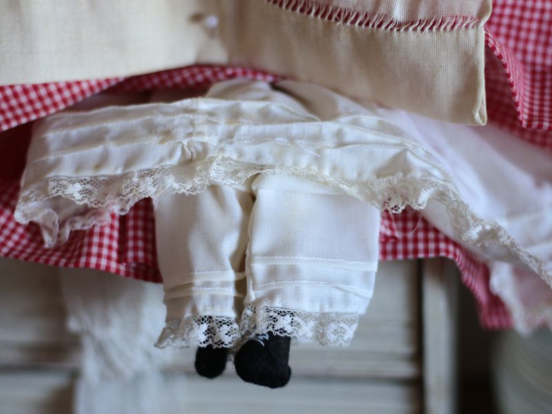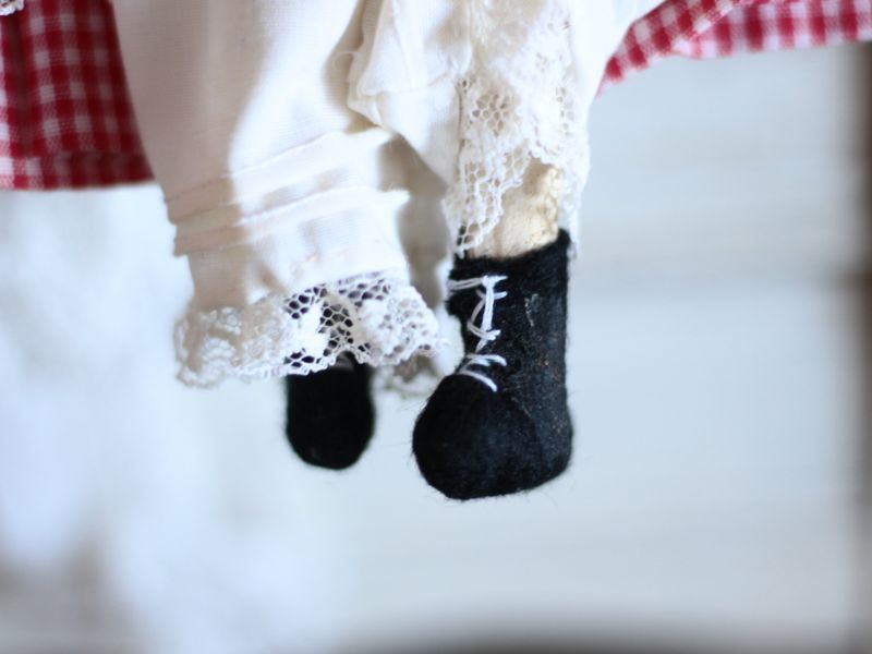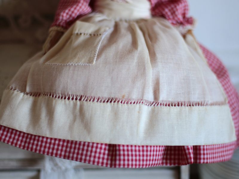 赤のギンガムチェックのWooden Peg Doll /11.5in