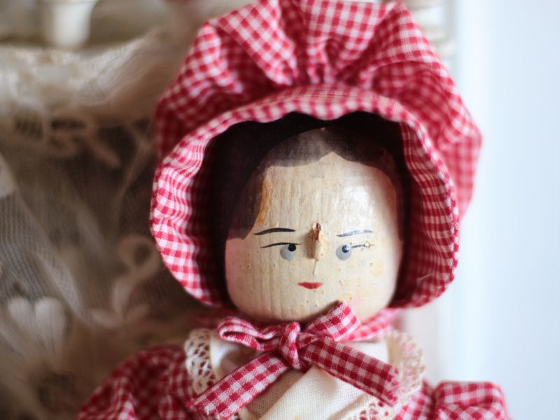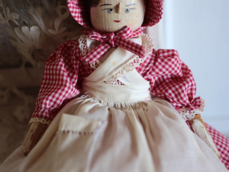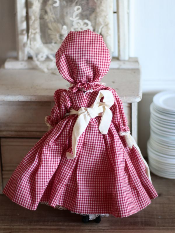 赤のギンガムチェックのWooden Peg Doll /11.5in [RUH080620]