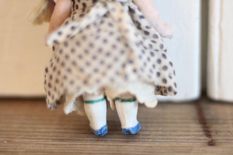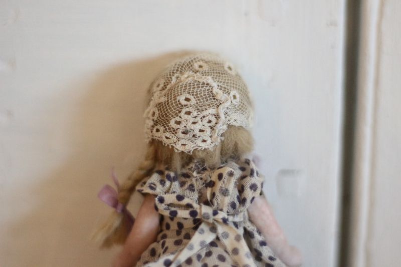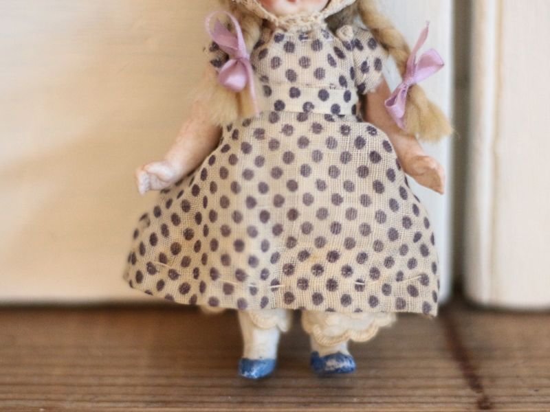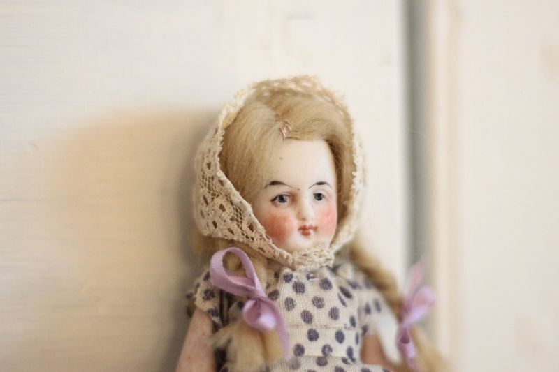 ドロワーズにレースのボネを身につけています。