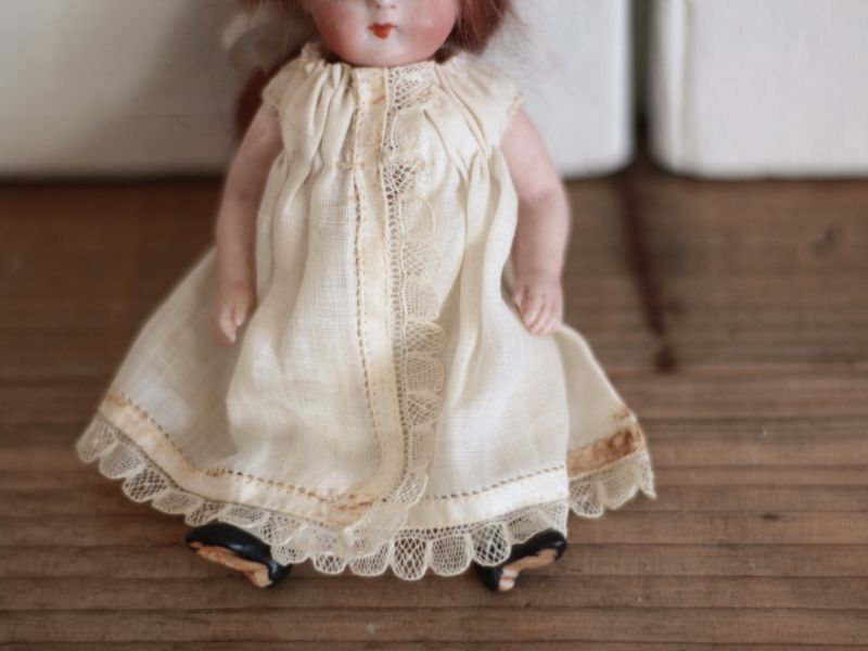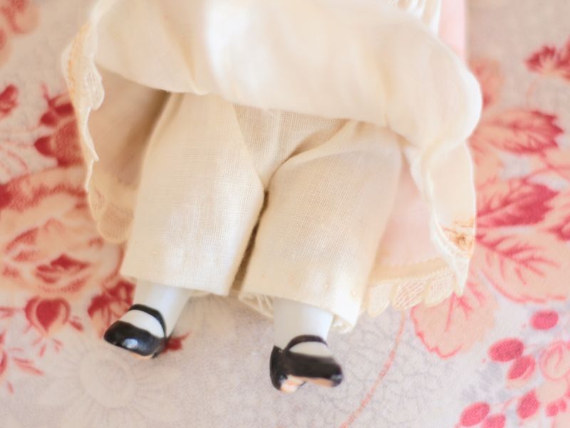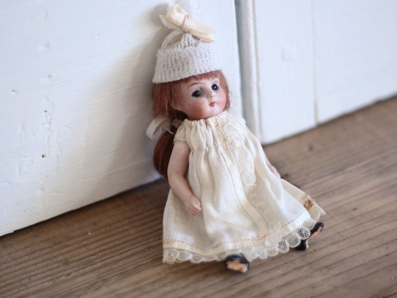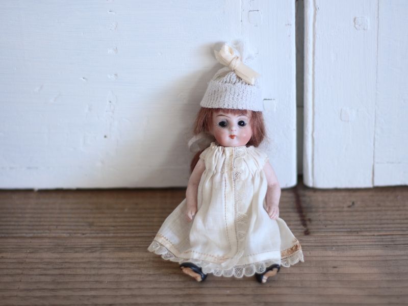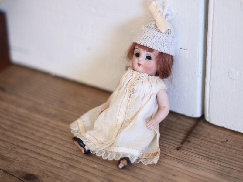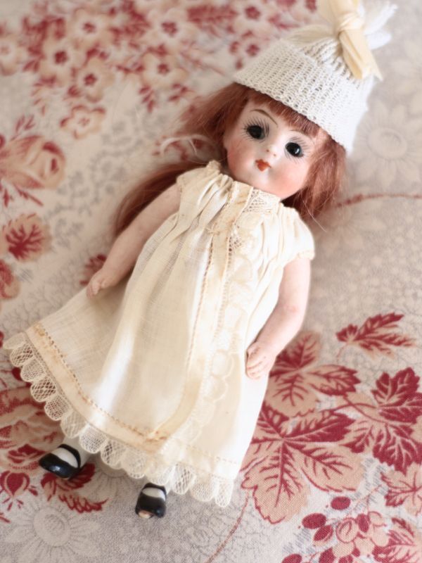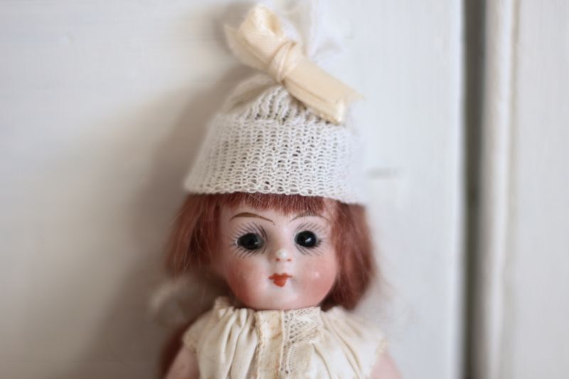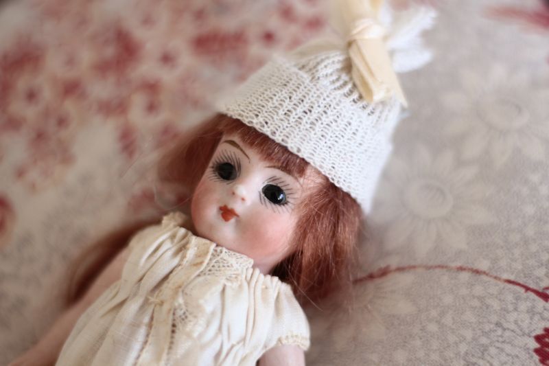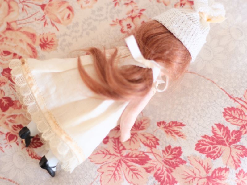 ドロワーズにドレス、可愛いお帽子を身につけたミニョネットさんです。
