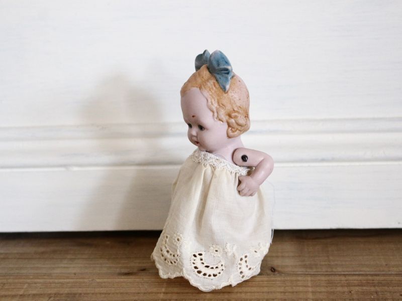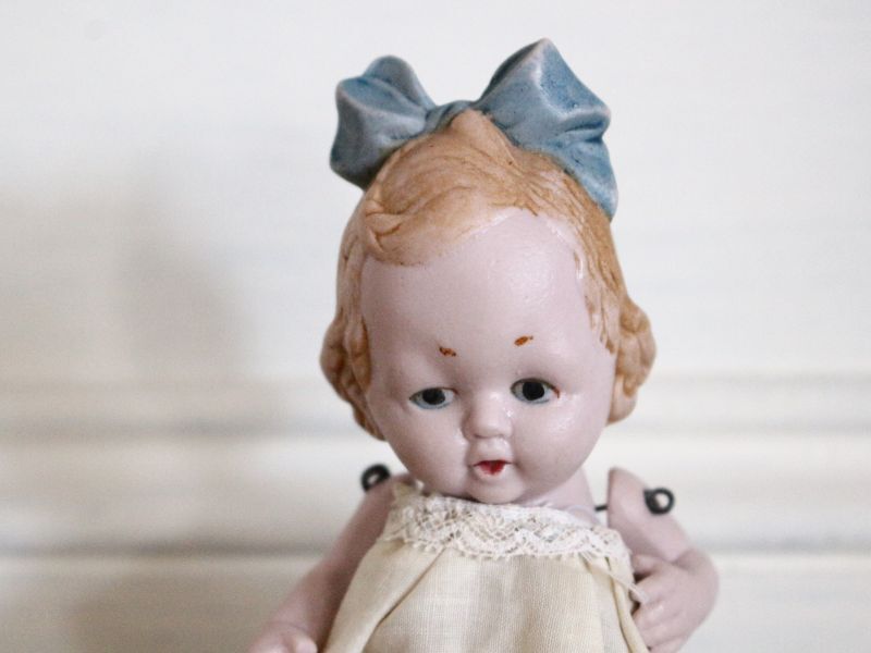 ブロンドのモールドヘアにブルーリボンの表情がキュートな