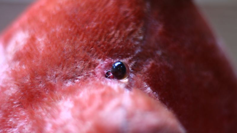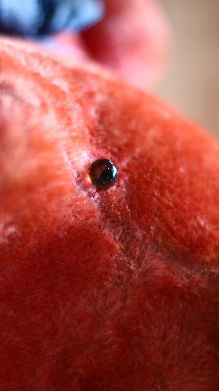 左目はグラスアイの針金が少し見えています。