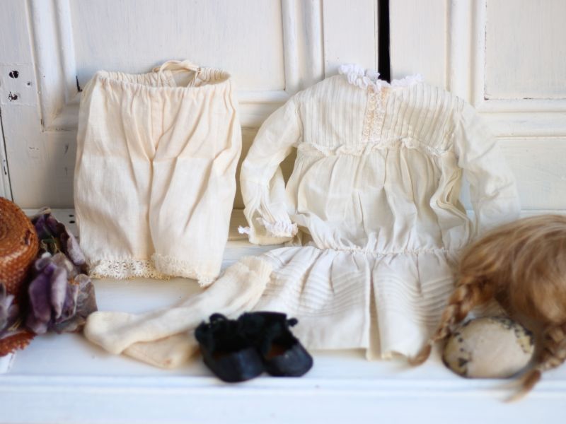 ドレス、ドロワーズ、リネンソックス、靴、帽子(傷みが酷くてポロポロ崩れます。)、wig