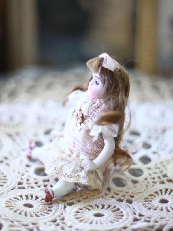 アンティークレースとシルクのコスチュームが可愛いとても小さなミニョネットさんです。