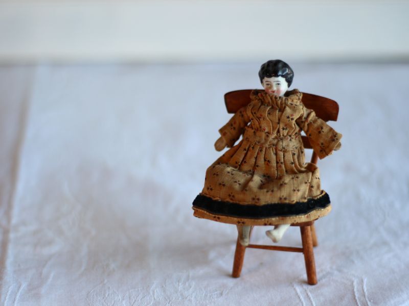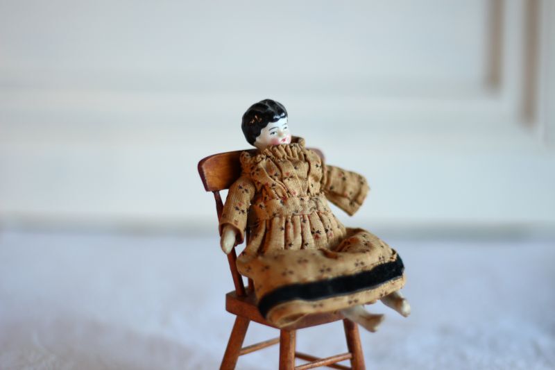 RARE!! Old Mini China head doll&Chair Set/Germany