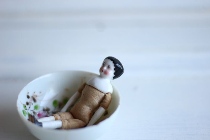 RARE!! Old Mini China head doll&小さな器 Set/Germany