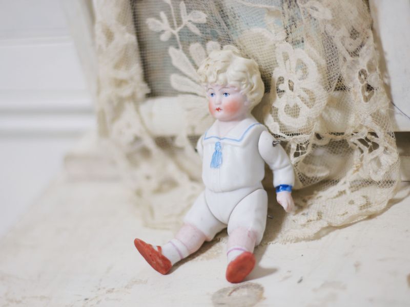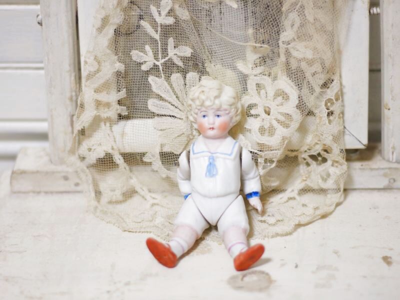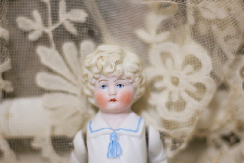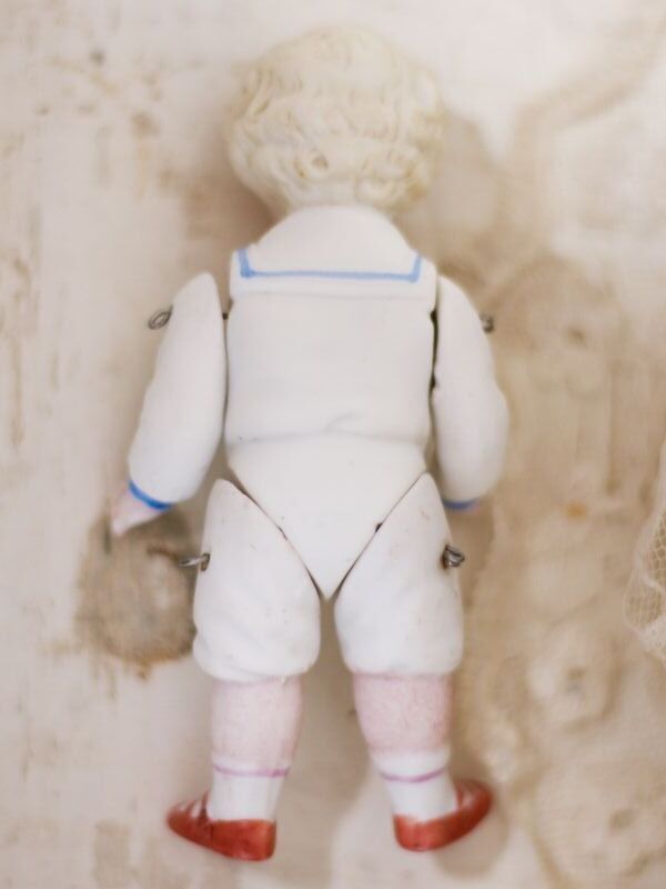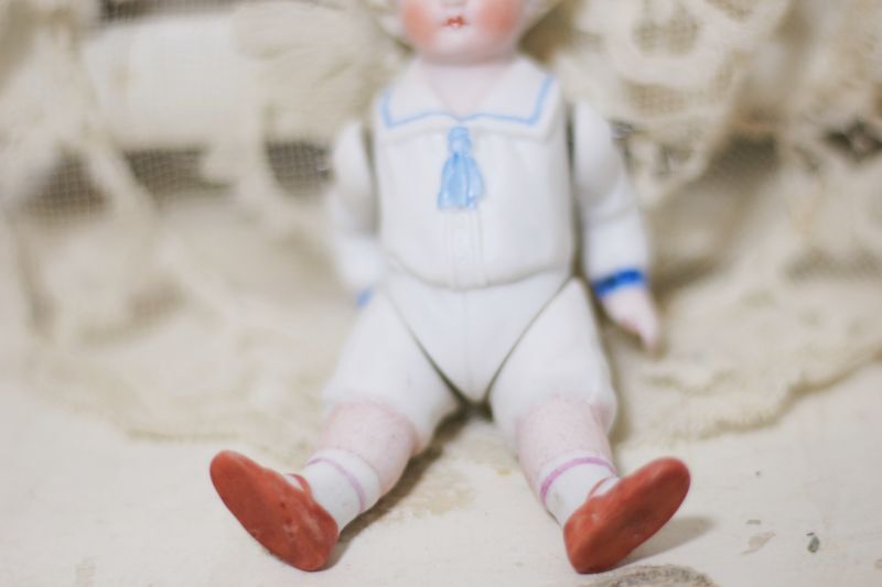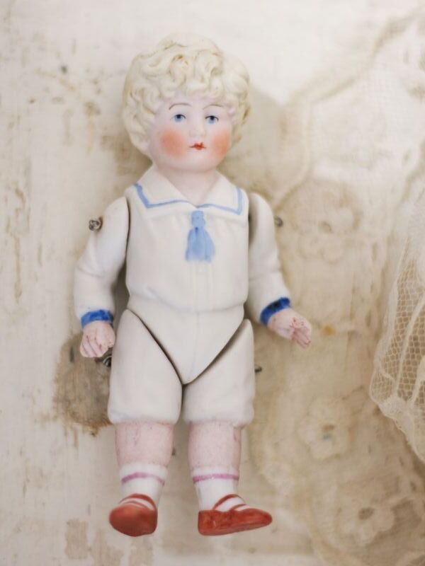 Hertwig All Bisque Doll //sailor blue ribbon//4.5in