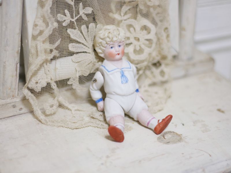 Hertwig All Bisque Doll //sailor blue ribbon//4.5in [FRA121622/F]