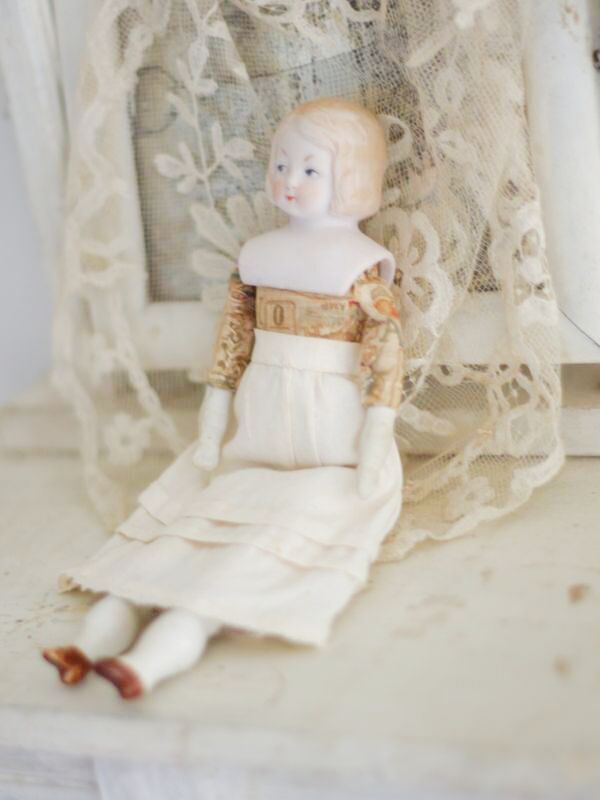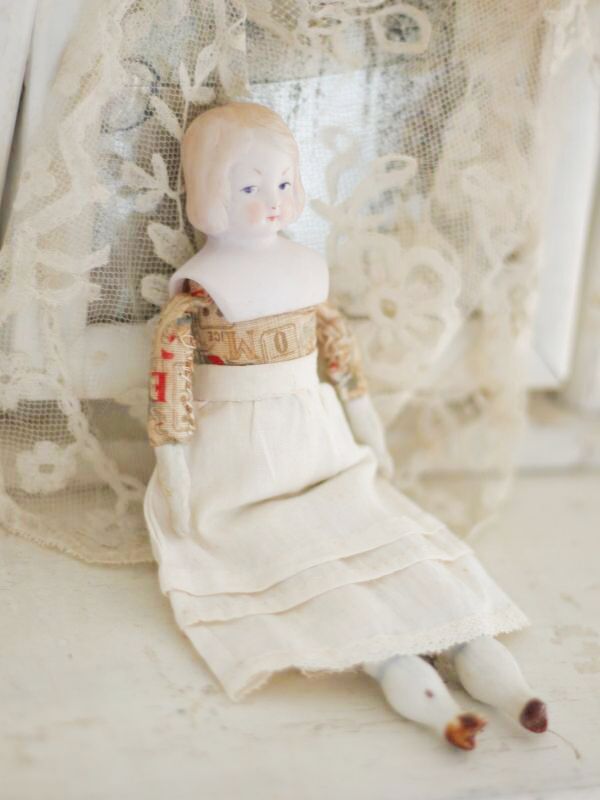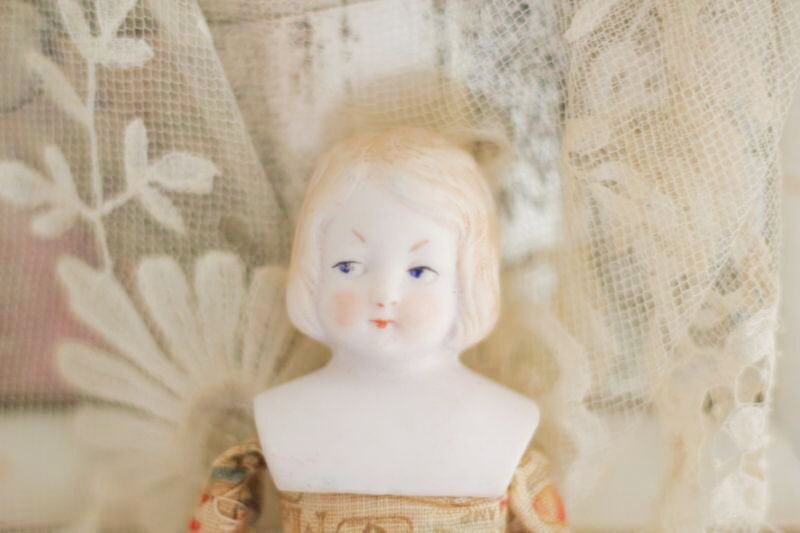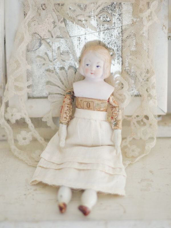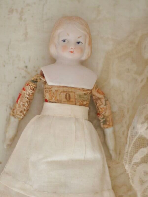 Rare!! Hertwig Print body china head doll //7in [FRA121622/M]