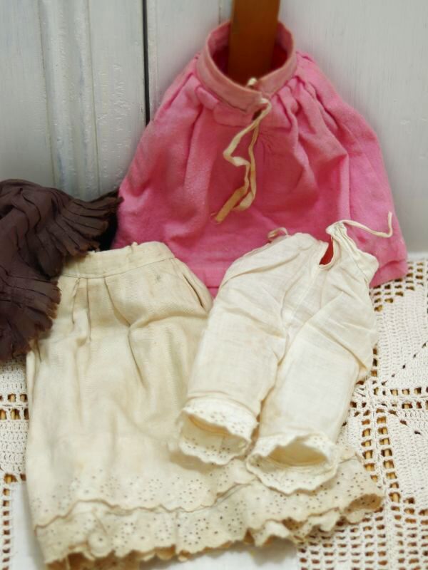 ボネ、ドレス、スカート、ペチコート、ドロワーズを身につけています。