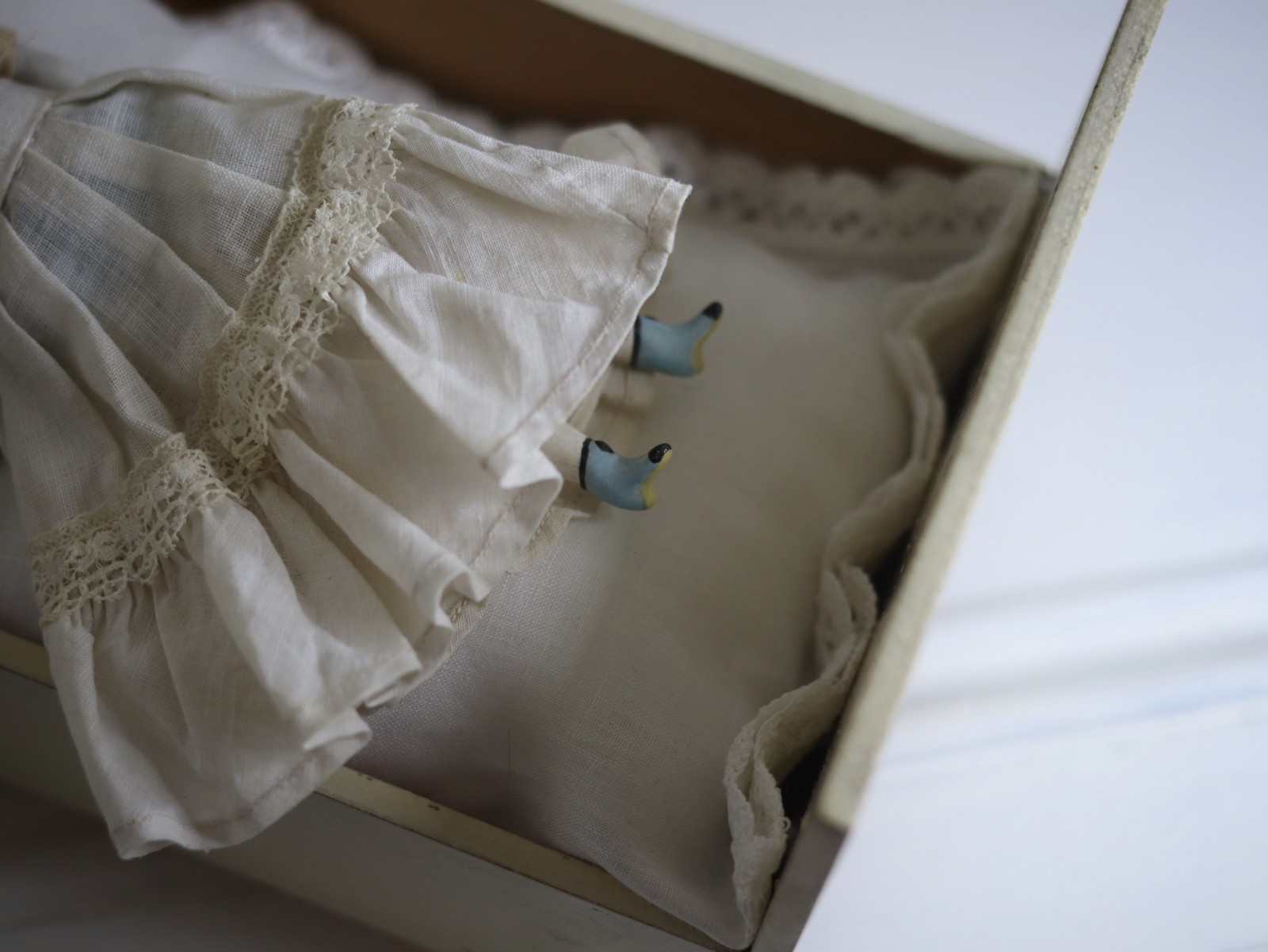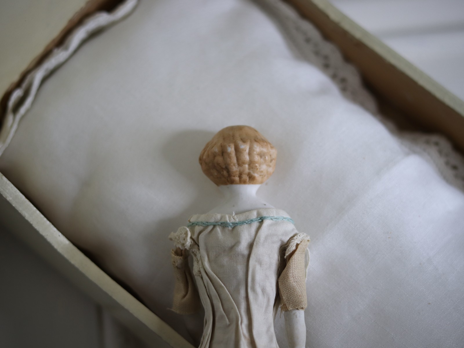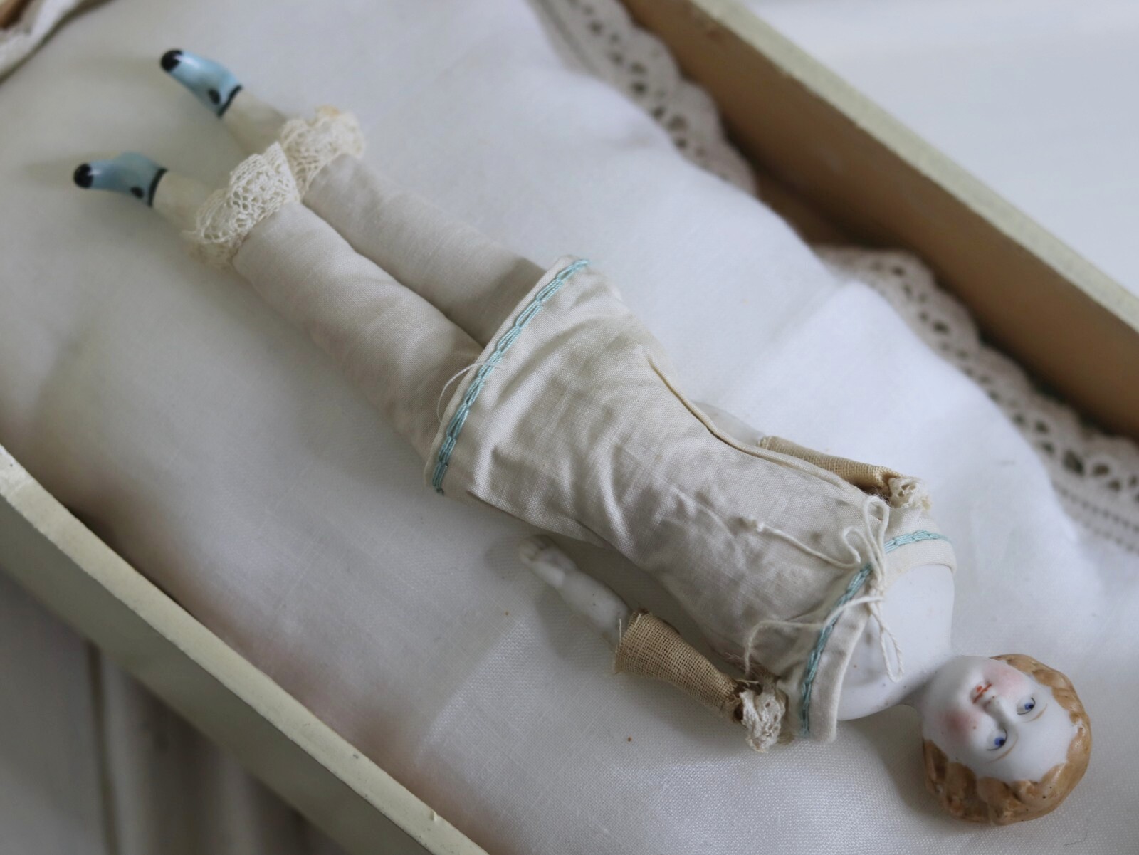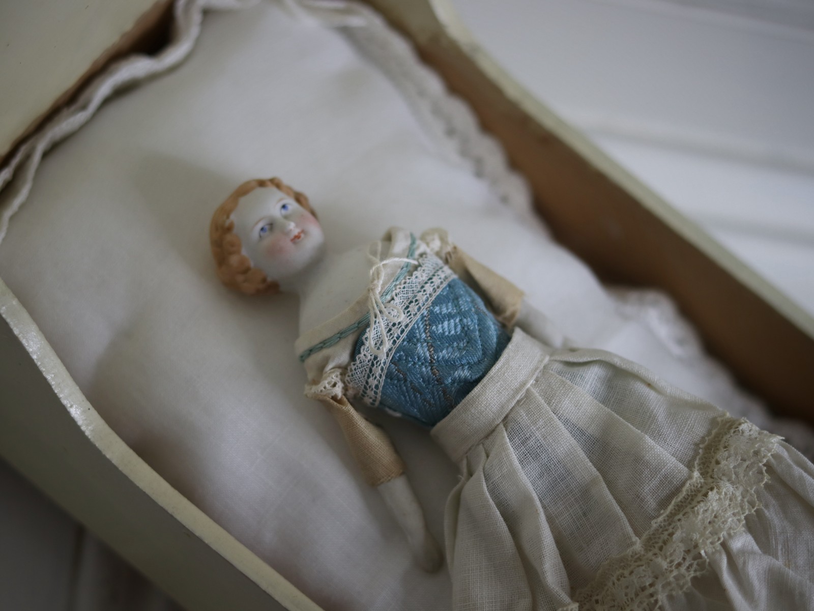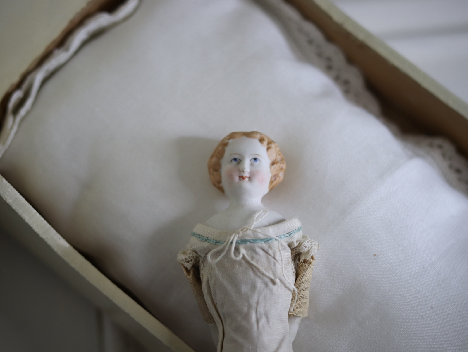ヴィクトリアン調のブロンドのチャイナヘッドドール