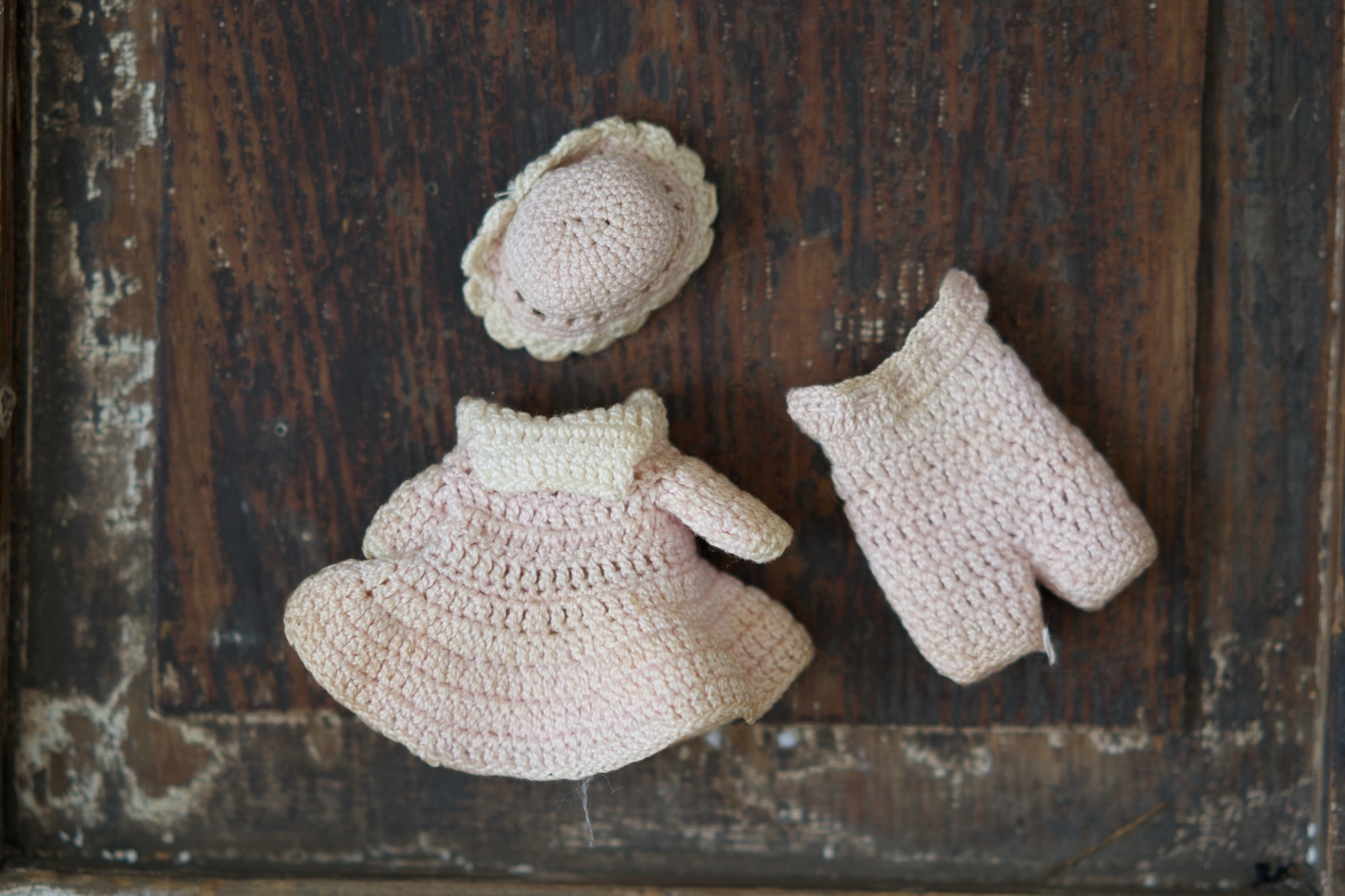 帽子、ドレス、カバーオールを身につけています。
