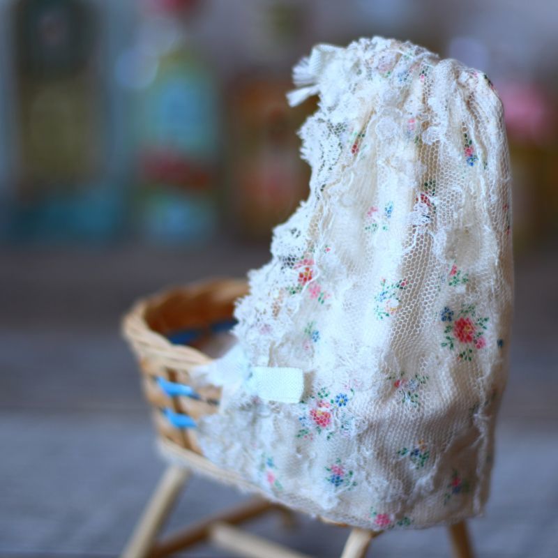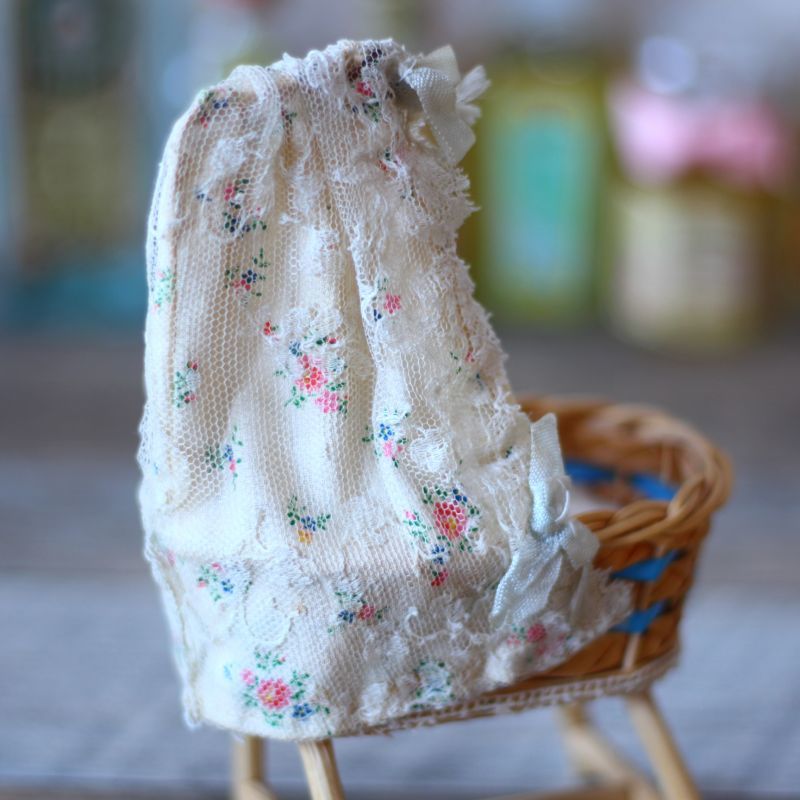 ドールハウス 籐の天蓋付きベッドA