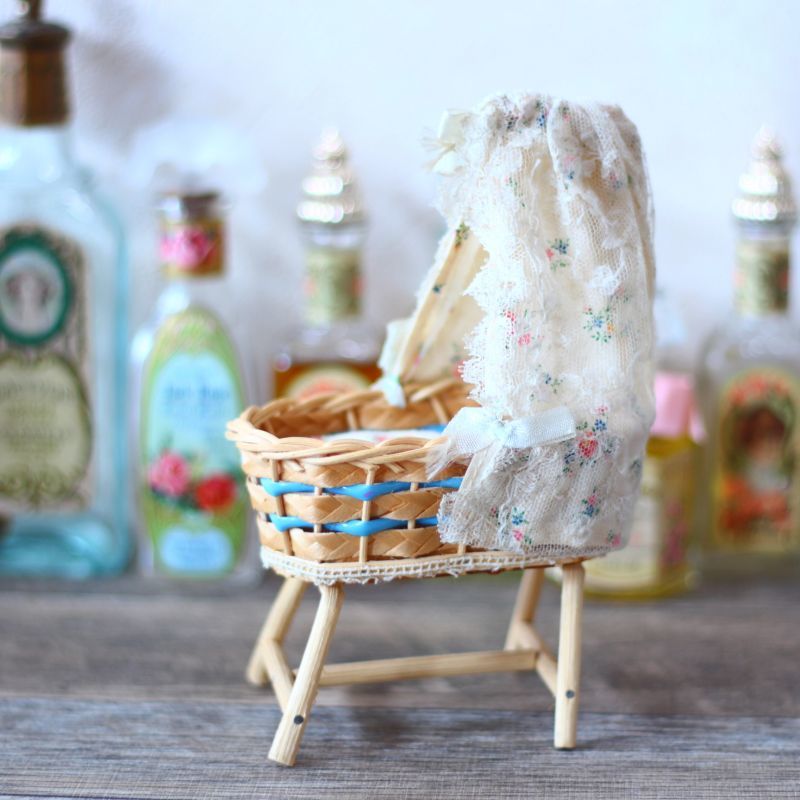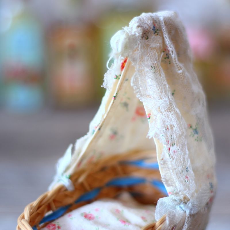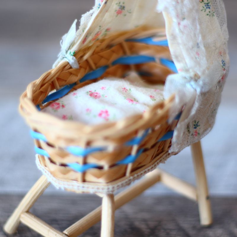 ドールハウス 籐の天蓋付きベッドB