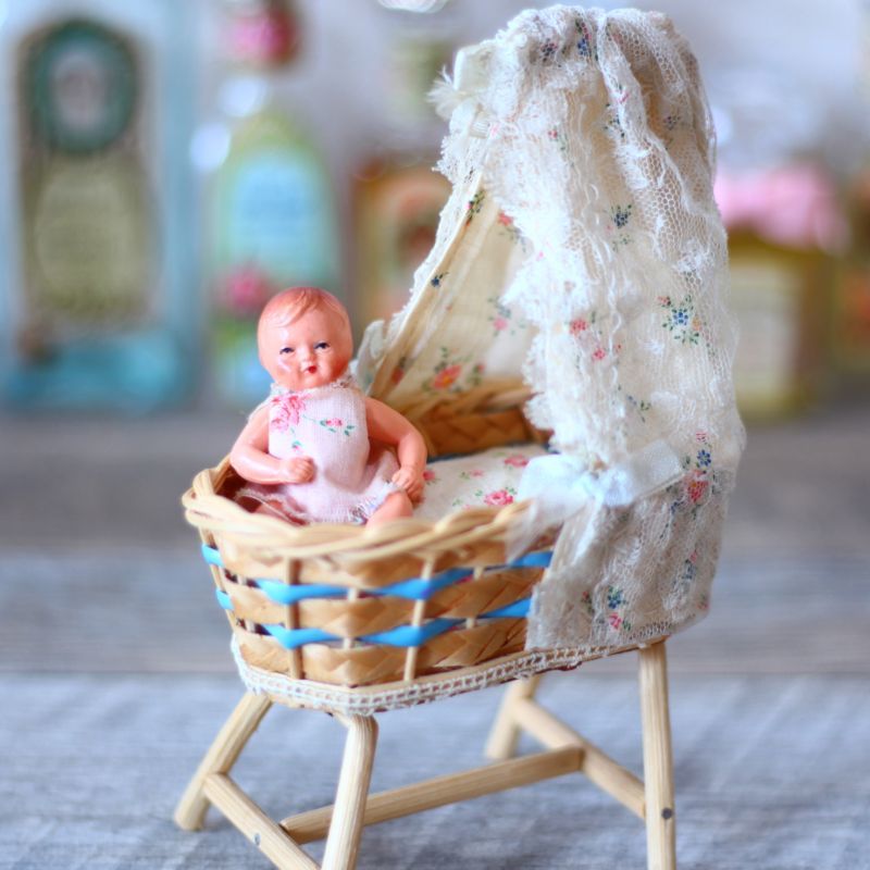 ドールハウス 籐の天蓋付きベッドB [EK11201810]