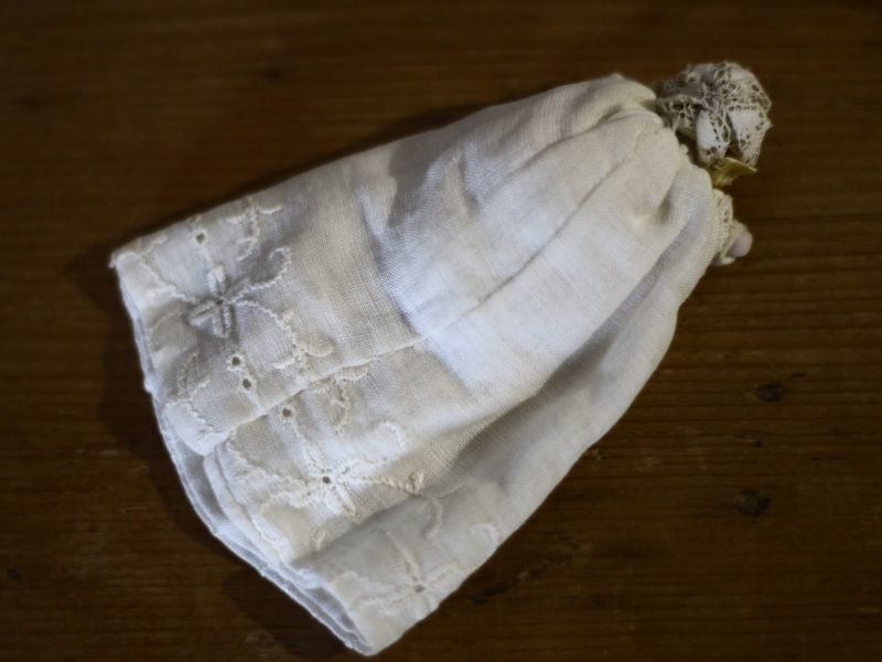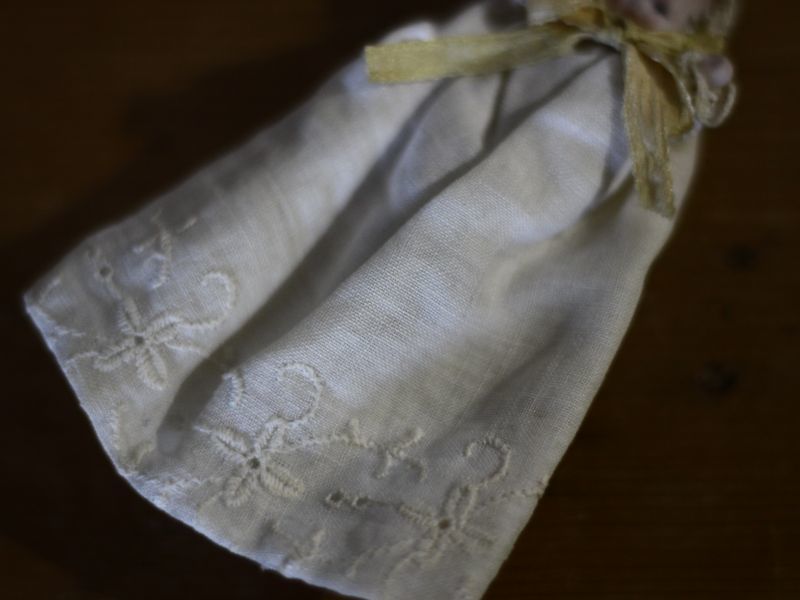 洗礼ドレスにボネ、可愛い靴下を身につけています。