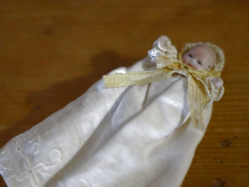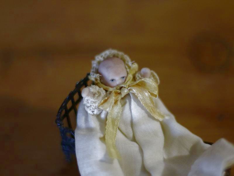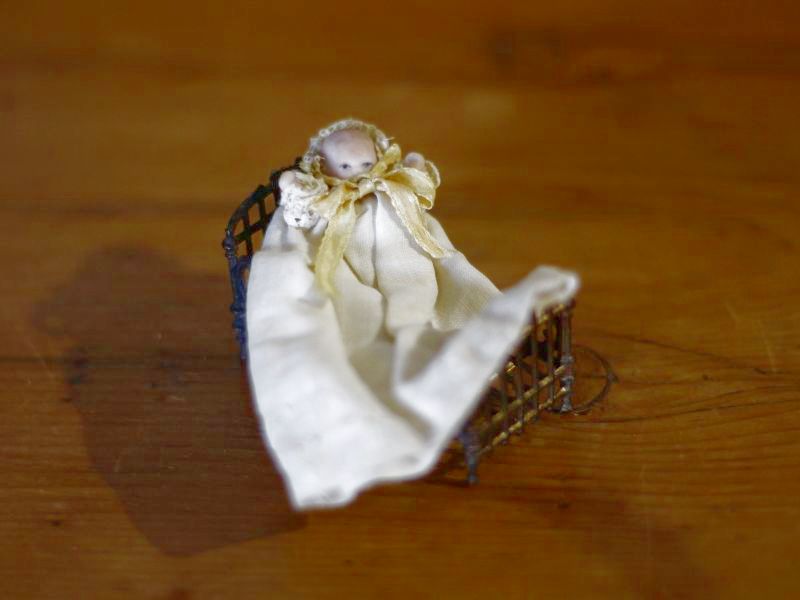 ベビービスクドールとベッドセット/Bisque baby&Bed