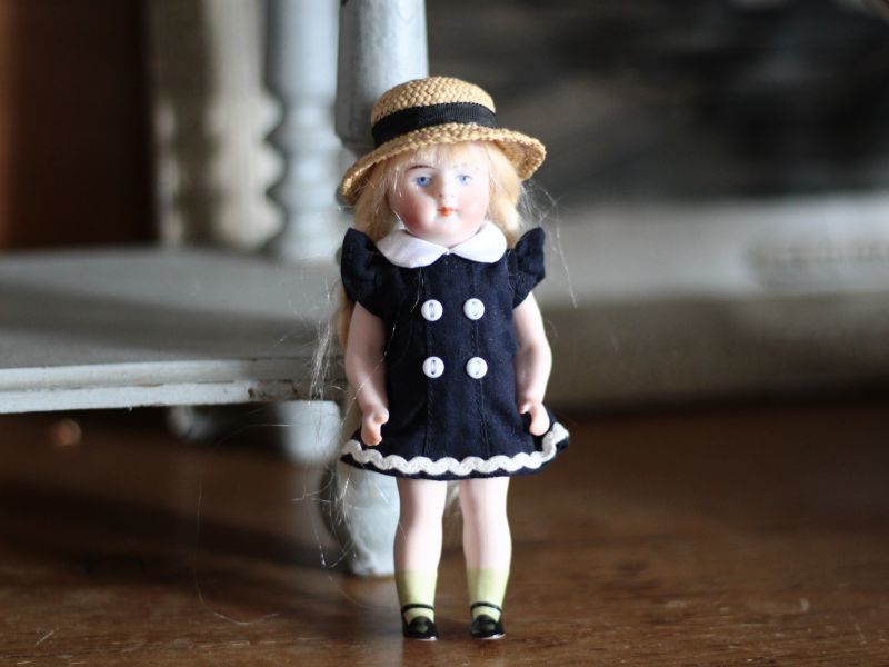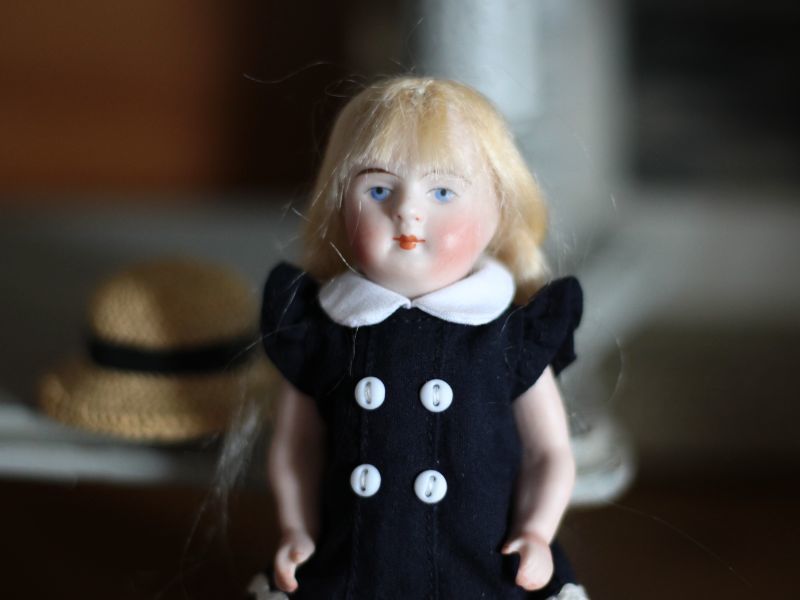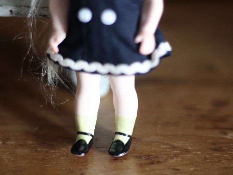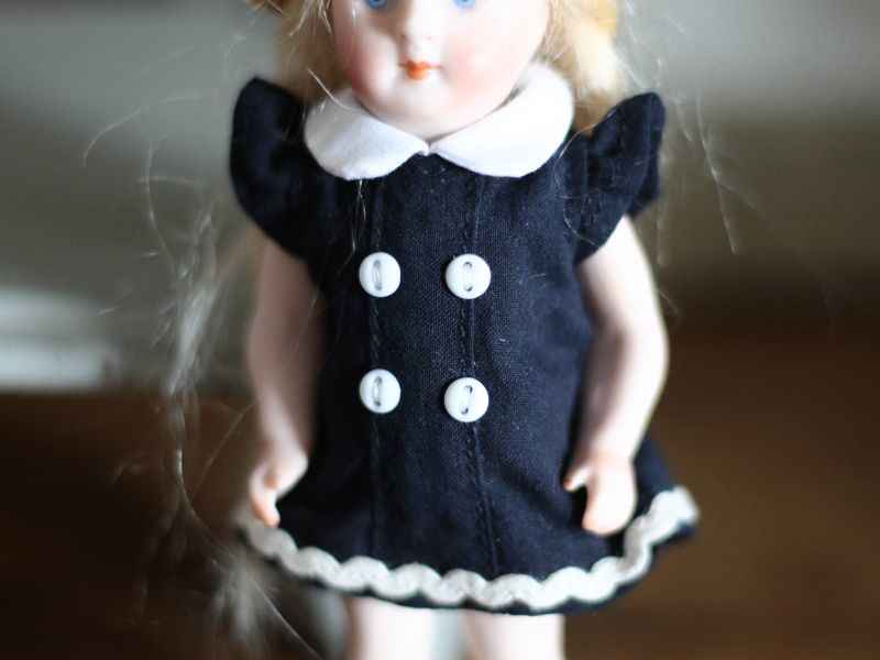 白い襟と小さなボタンの可愛いドレスは
