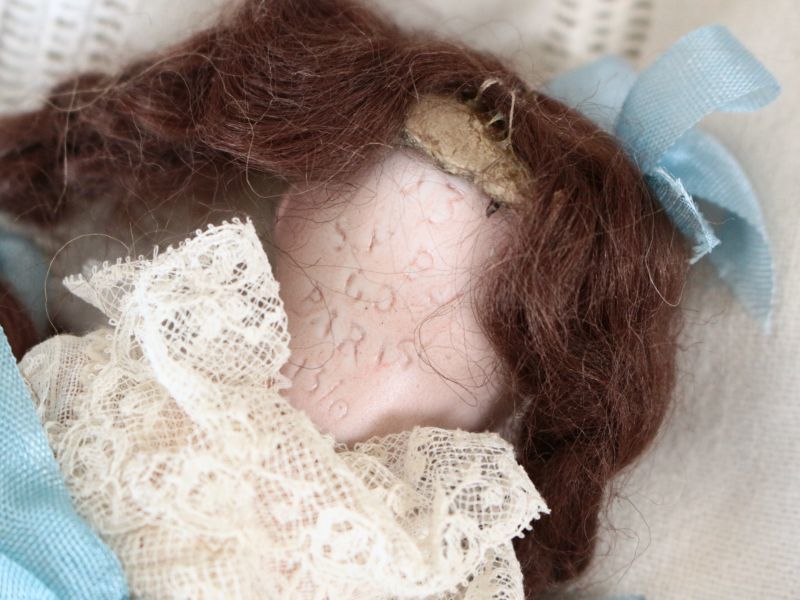 水色おリボンのコ左頬に1mmほどの僅かな色抜けがあります。